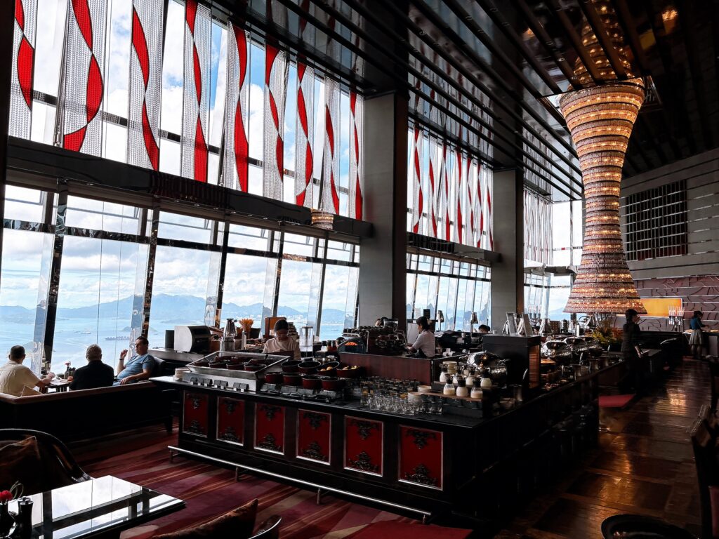 リッツカールトン香港では、102階に位置する「The Lounge & Bar」で豪華な朝食ビュッフェを楽しむことができます。