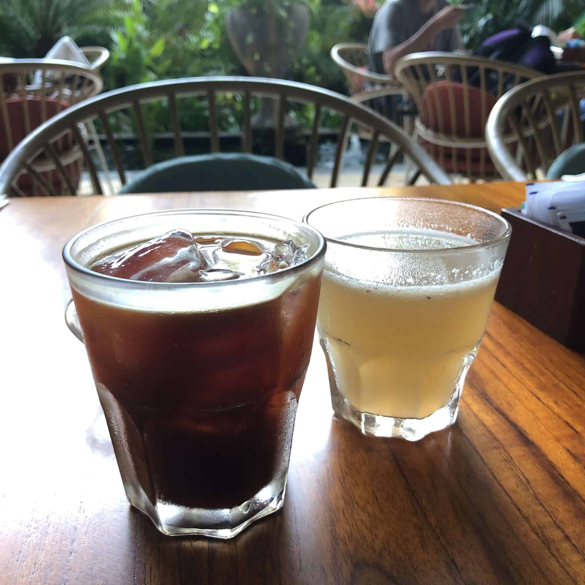 パンを食べているとメニュー表から注文した2種類のドリンクが運ばれてきました。私はアイスコーヒーとバナナジュースを選びました。アイスコーヒーはスターバックスのドリップコーヒーのような濃さはなく、どちらこというとアメリカンコーヒーに近く飲みやすかったです。バナナジュースはちょっとイマイチ...