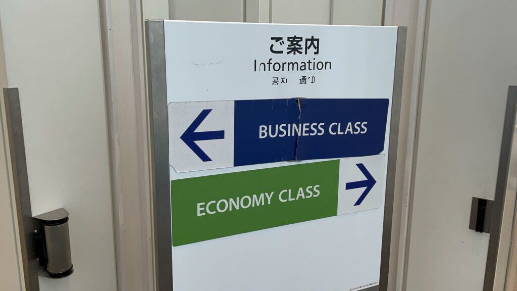 ビジネスクラス専用のレーンでスムーズにチェックインを終え、出国手続きを進めます。