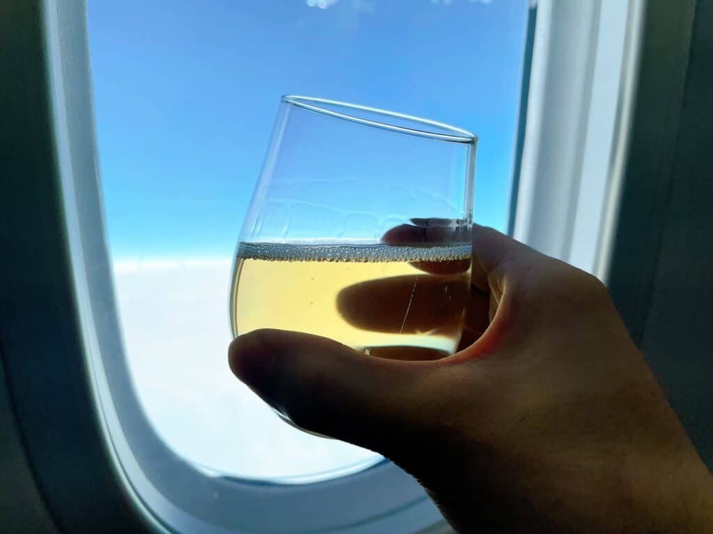 ビジネスクラスを利用すると、ついつい撮影してしまう一枚。
