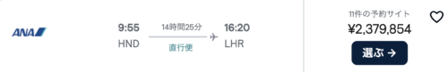 今回は羽田からロンドンまでのファーストクラスの航空券はANAマイルを使って特典航空券を発券。