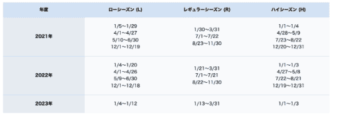 まずは自分の旅行に行く予定が特典航空券のどのシーズンに当てはまるか確認しましょう!