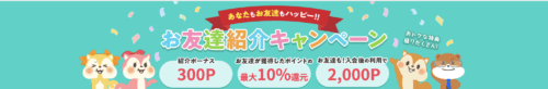 翌々月までに5,000pt以上を獲得すると、2,000ptをもれなくプレゼント中です!