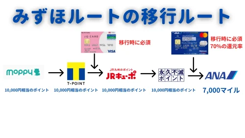 ここではモッピーで獲得したポイントをANAマイルに移行できる「みずほルート」について詳しく解説していきます。