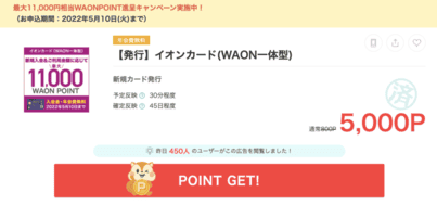 イオンカードもカードを発行するだけで5,000pt獲得可能。