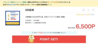 SBI証券の場合、口座解説後、5万円の入金で6,500pt獲得。