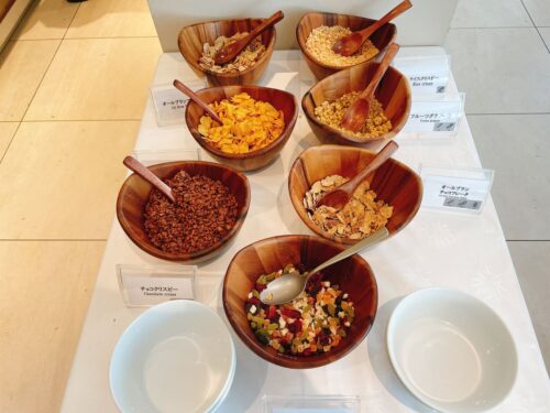 コーンフレークやグラノーラなど複数種類用意されています。