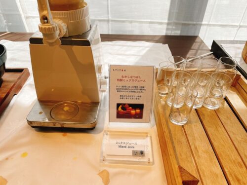 ドリンクサーバーも置かれており、ジンジャーエールやメロンソーダなどのジュースも朝から楽しめます。