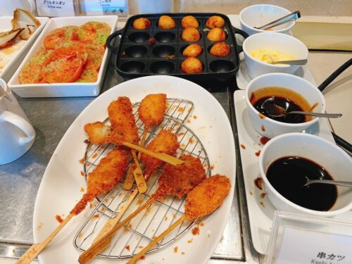 大阪らしくたこ焼きと串揚げもありました。