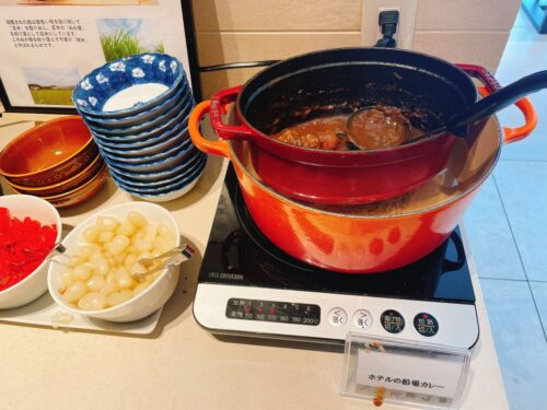 普段はあまりホテル朝食でカレーを食べないのですが、匂いにつられてしまい、ついつい手に取ってしまいました。