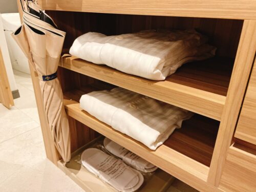 廊下にある収納にはパジャマやスリッパなどが収納されています。