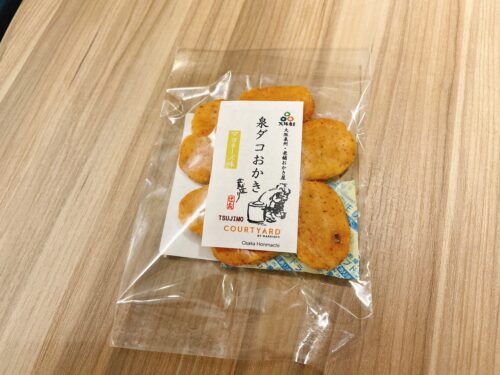 また、チェックインのタイミングで大阪湾で獲れる泉ダコを浸かったおかきもいただきました。