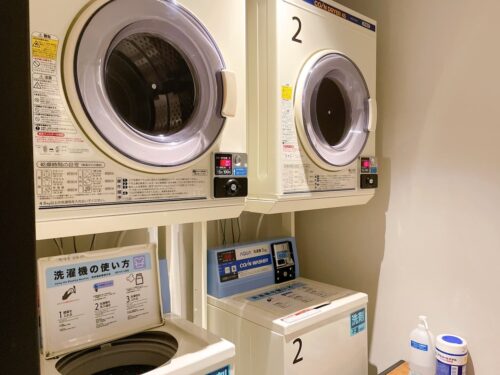 フィットネスルームのお隣には24時間利用できるコインランドリーもあります。