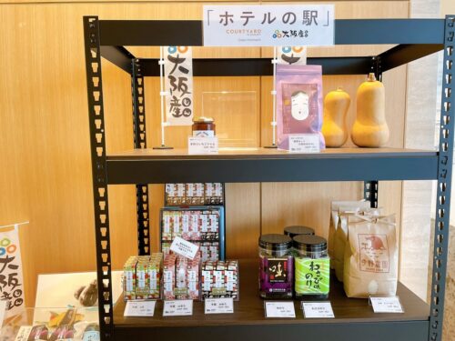レセプション横には、ホテルの駅と題して、大阪産のお土産などが多数販売されていました。