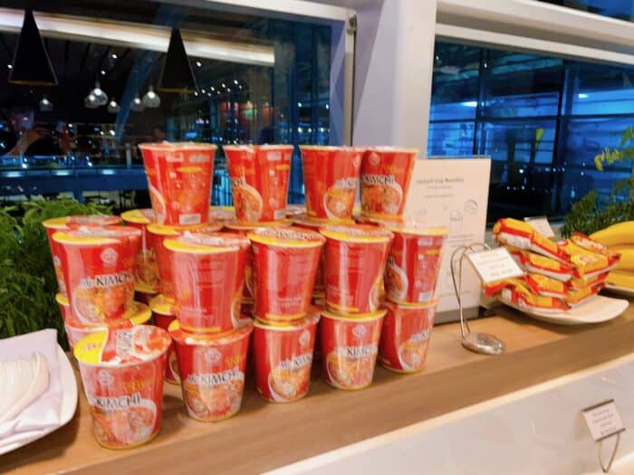 ヌードルコーナーにはインスタント麺が用意されており、自分でお湯を注いで食べるタイプです。