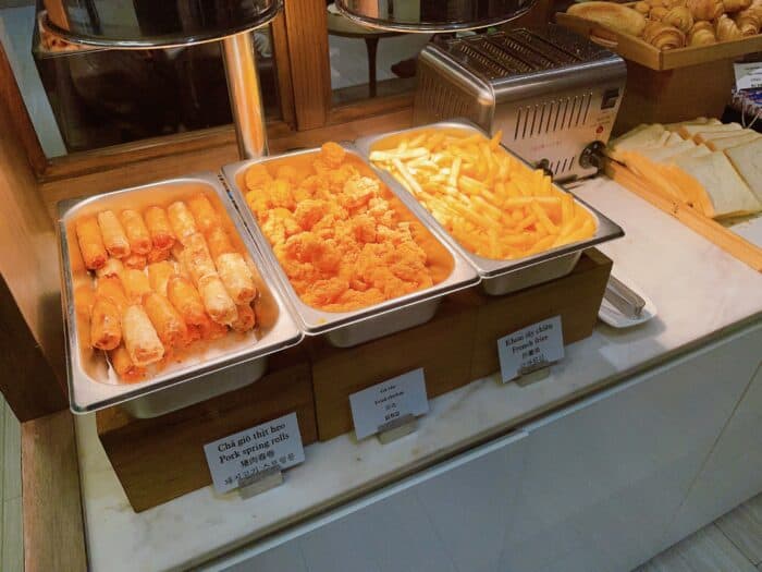 揚げ物コーナーには春巻き、唐揚げ、ポテトフライ。