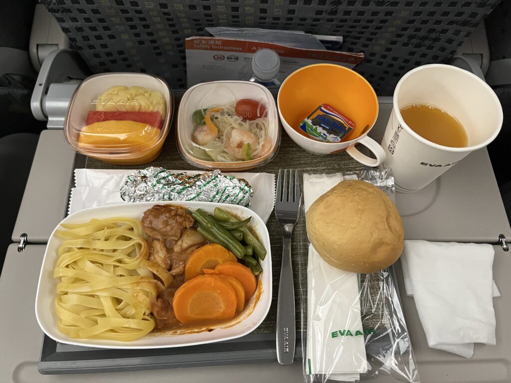 エバー航空の機内食は、機内食にありがちな炭水化物多めのメニュー構成になっておらず、しっかりとバランスや栄養を考慮したメニューになっていました。