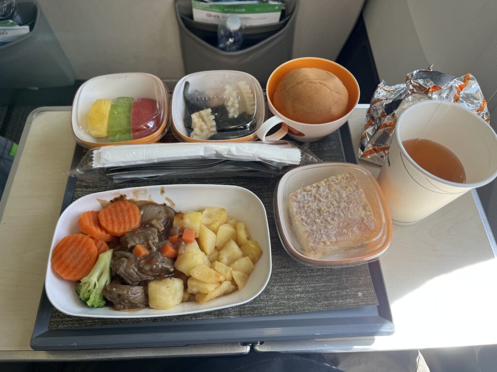 炭水化物がやや多めではありますが、どの料理も丁寧な味付けでエコノミークラスとは思えないクオリティ。