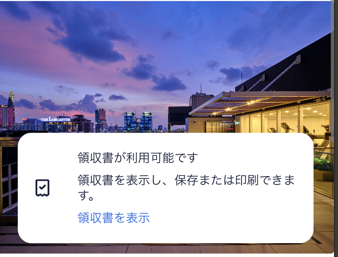 予約を開くと「領収書が利用可能です」という通知が表示されます。