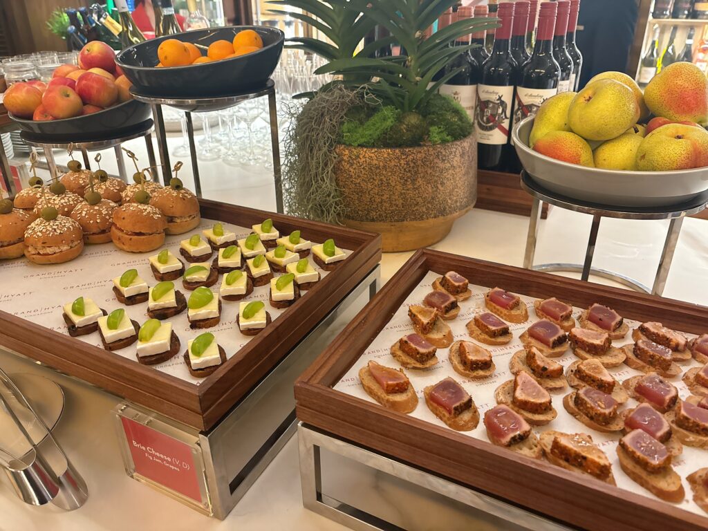 炙りのマグロにスパイスを効かせたカナッペやクリームチーズとマスカットの乗ったカナッペなど。