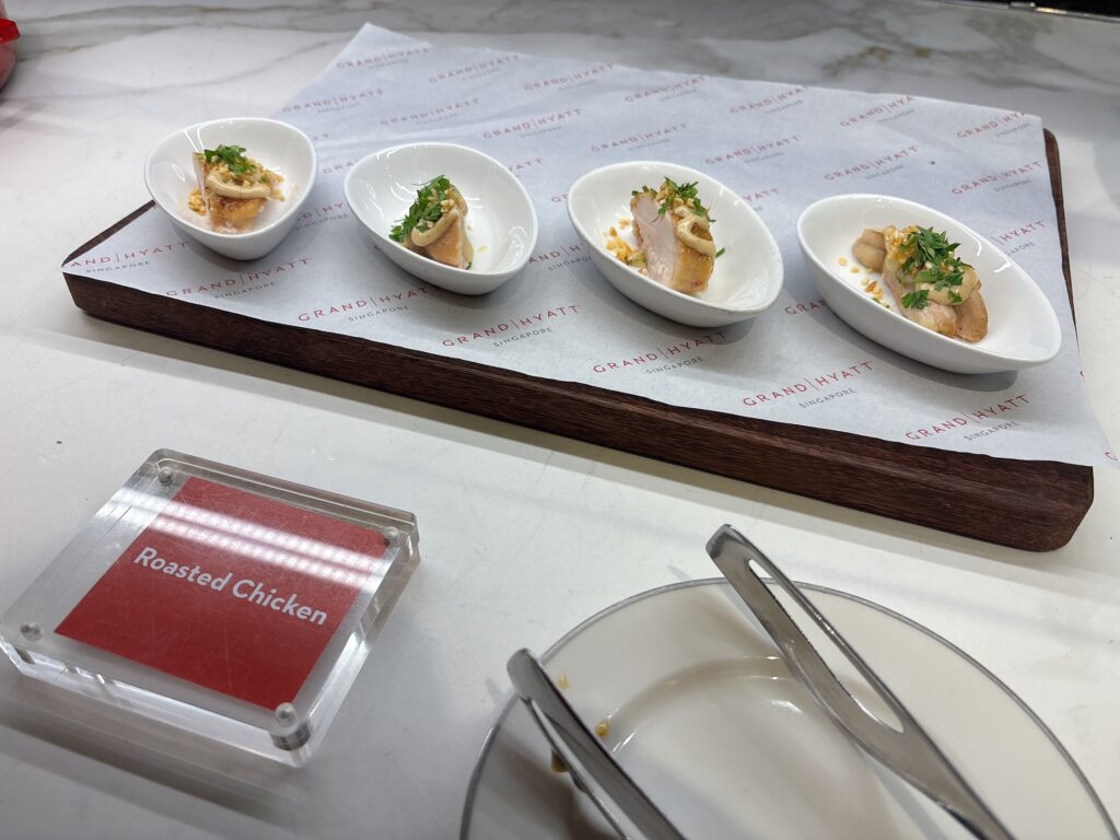 ローストチキンはチキンの上にマヨネーズとにんにくチップが乗っていて背徳感を感じられる美味しさ。