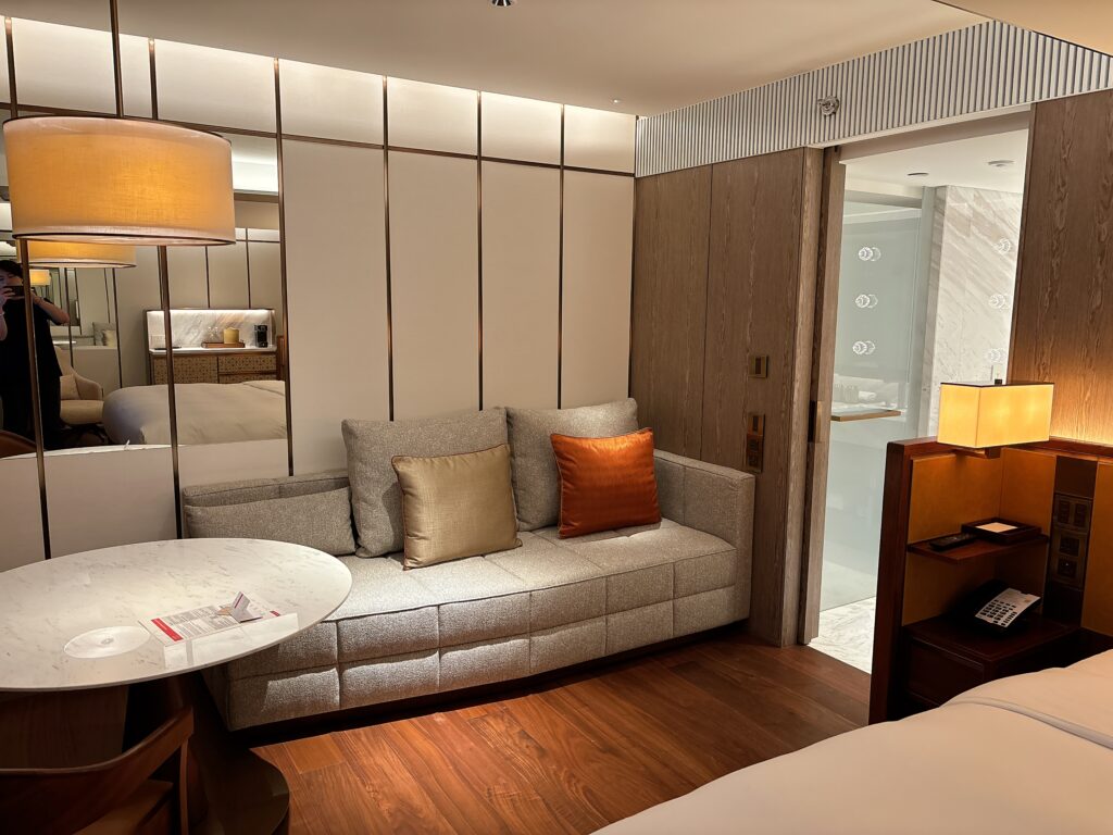お部屋の広さは54m2と広めのお部屋ですが、ベッドが大きすぎるのと天井がやや低めの作りのため、思ったほど広さを感じませんでした。