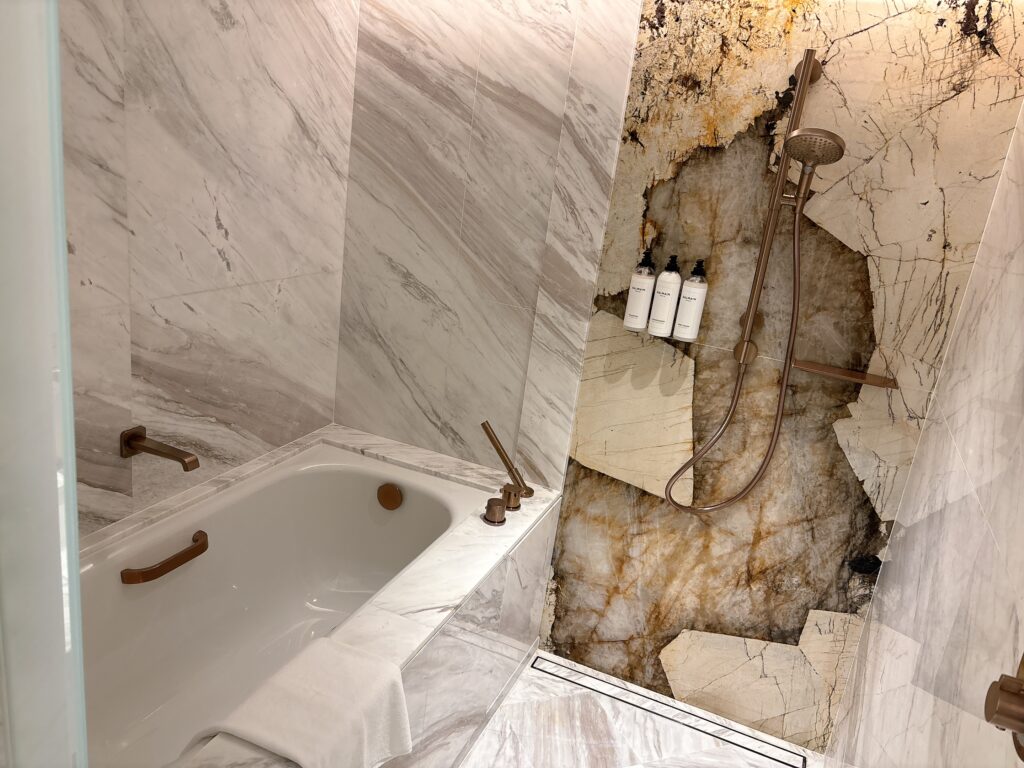 水回りは大理石がふんだんに使われた高級感のあるデザイン!