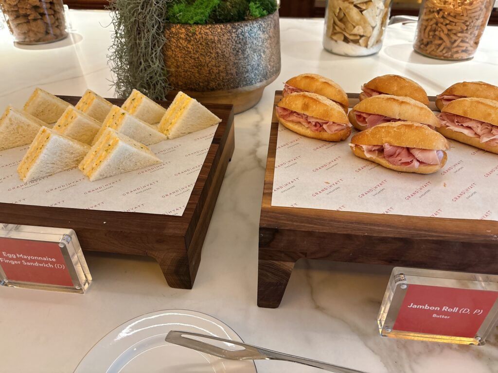 アフタヌーンティーの設定はありませんが、15時ごろラウンジを訪問すると、玉子サンドイッチとハムのサンドイッチがありました。