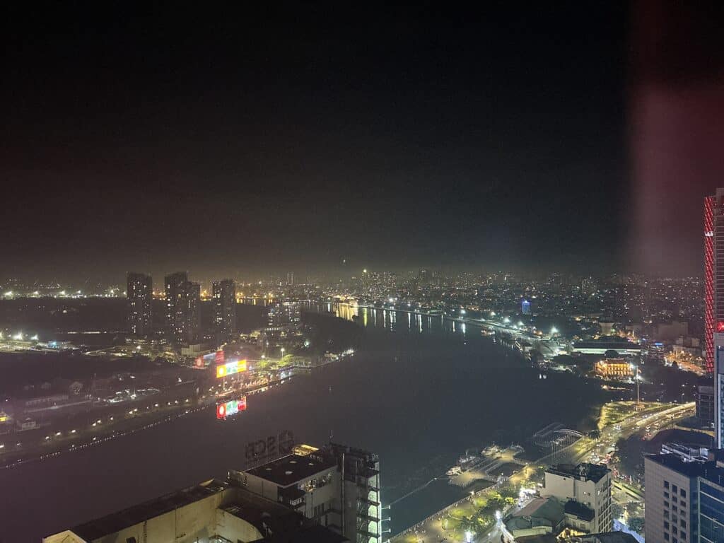 ベトナムの物価を考えるとなかなかのお値段ですが、夜風にあたりサイゴンリバーの夜景を楽しみながらいただくお酒は格別。