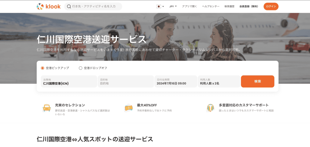 事前に予約しておけば当日ドライバーが空港の到着ロビーで待っていてくれるため、ソウル市内までの移動に関する不安を解消したい場合におすすめです。