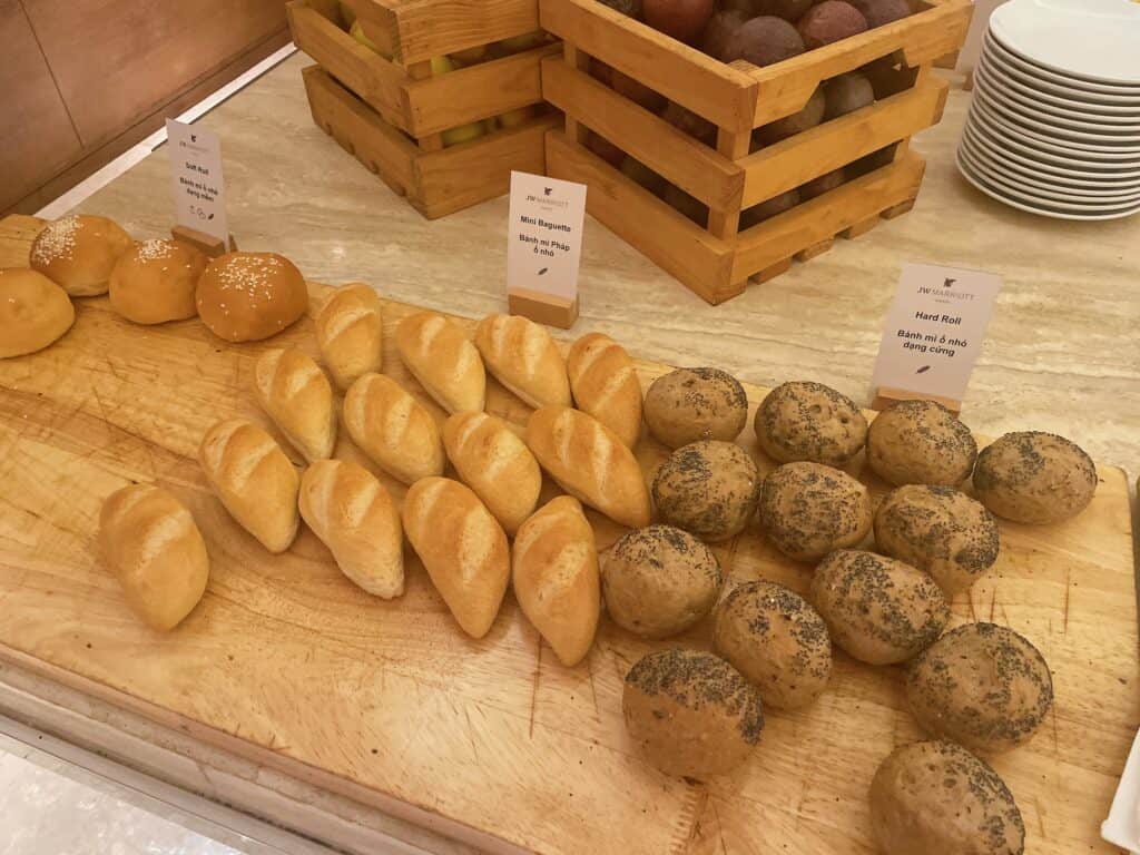 ラウンジの朝食ではハード系のパンからデニッシュ系のパンまで幅広く用意されています。