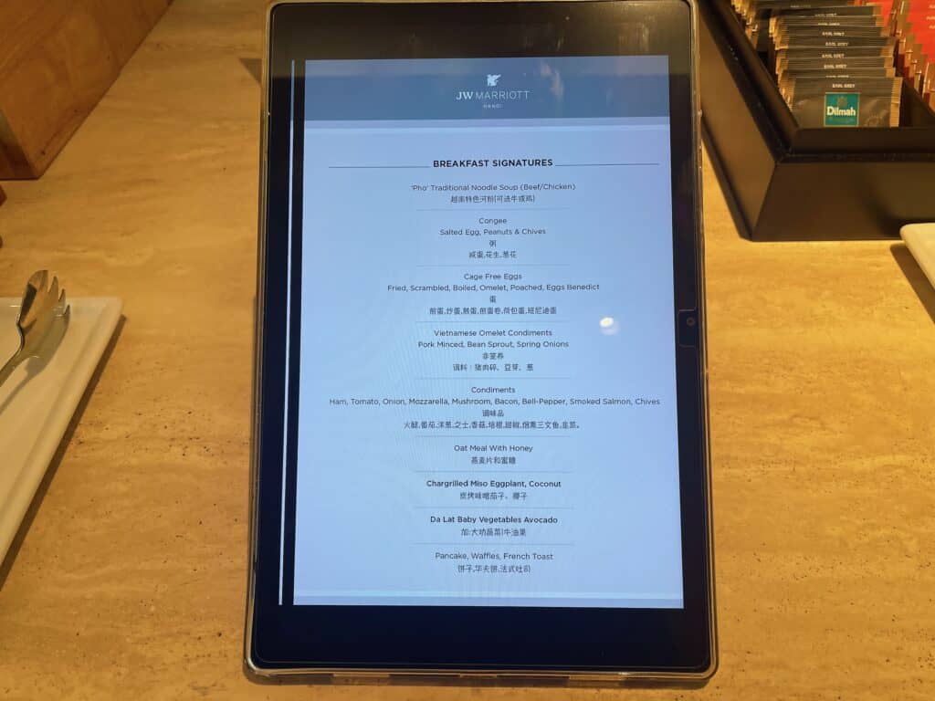 JWマリオットホテルハノイのエグゼクティブラウンジのフードプレゼンテーションの時間帯は下記の通りです。