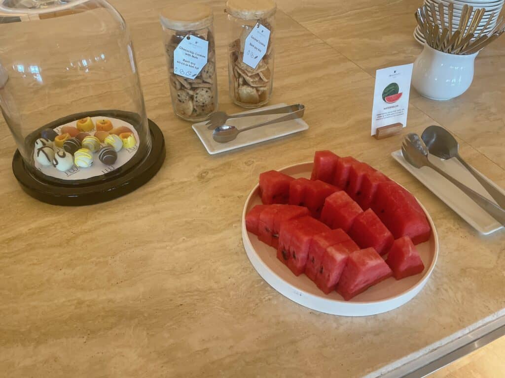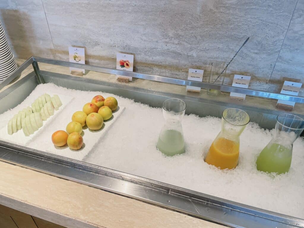フードプレゼンテーションが行われていない時間帯にはカットフルーツやジュース、簡単なフルーツ類が提供されます。