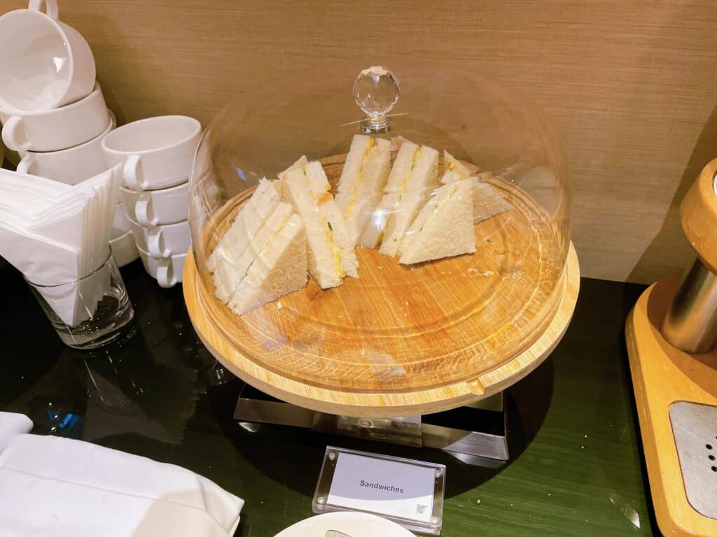 ティータイムの時間になると、サンドイッチやケーキなどの軽い軽食が用意されます。