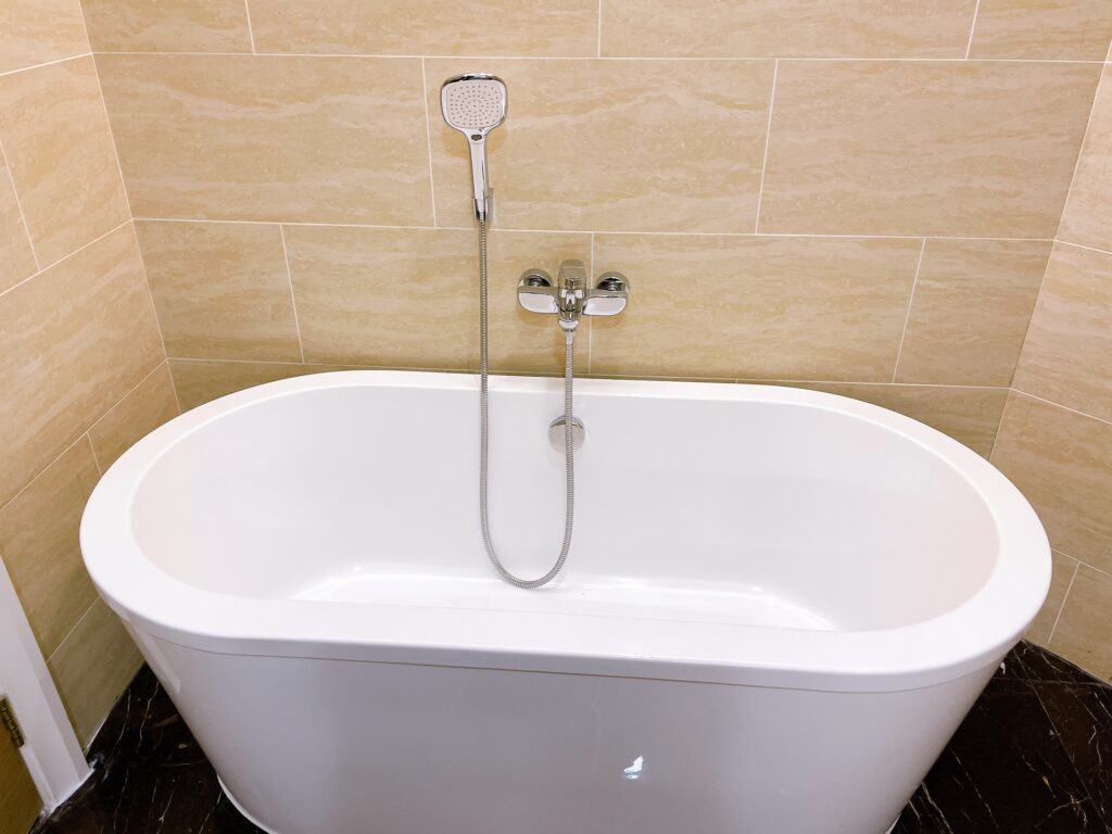バスタブは底が深く、ゆったりと浸かれるタイプ。