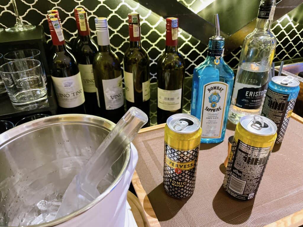 カクテルタイムの時間になると軽食やアルコールの用意があります。