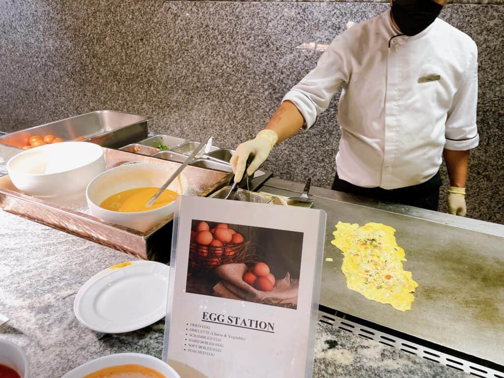 エッグステーションでは、出来立てのオムレツや目玉焼きを注文できます。