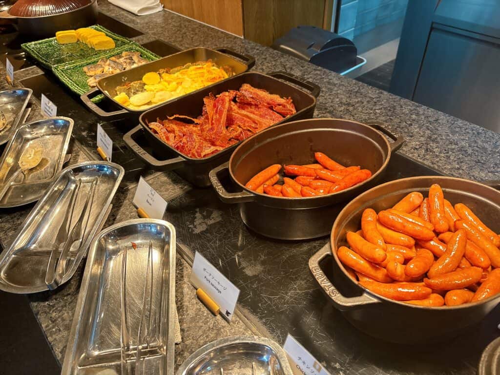 ソーセージやカリカリベーコンなど、朝食の定番メニューなど。