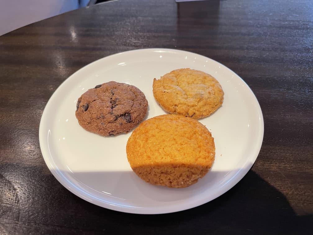 お菓子を食べ終えて、再び提供台に戻ると、少し集めのクッキーが3種類追加で用意されていたので、ピックアップしました。どれもしっとり系の手作り感のあるクッキーでおいしかったです。