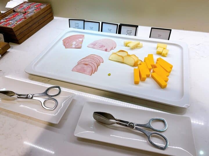 コールドミールコーナーには、キムチやサラダ、チーズやハムなどがありました。