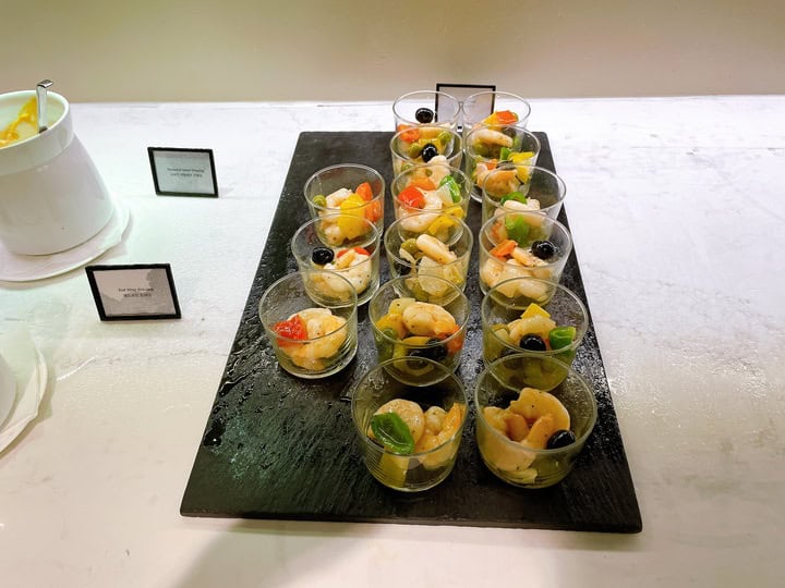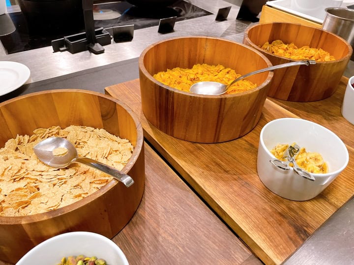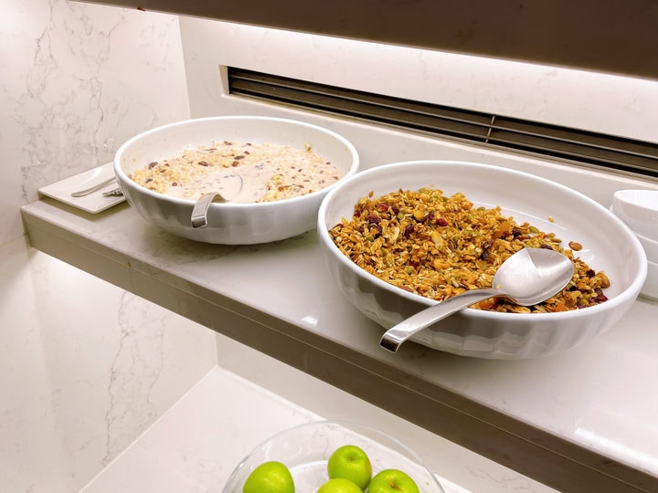 コールドミールは前日のカクテルタイムと同じようなラインナップに加えて、グラノーラやミューズリーなど朝ごはんらしいメニューもありました。