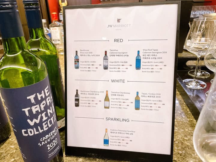 JWマリオットソウルのカクテルタイムは16:30~21:00と、クラブラウンジの中では長めの時間設定。