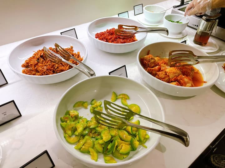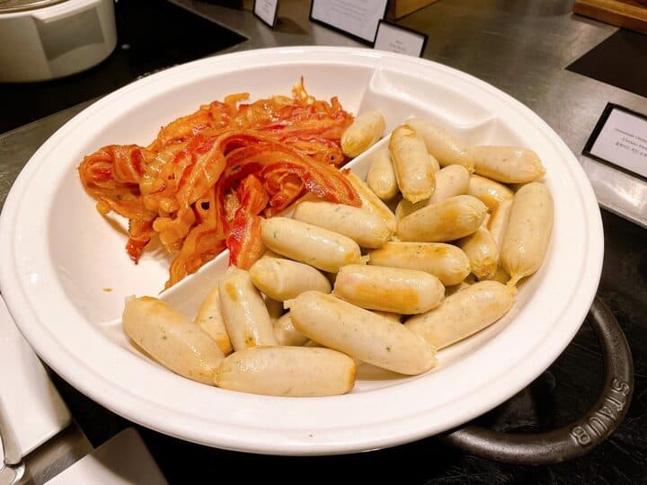 ホットミールコーナーには定番のソーセージ・ベーコン・スクランブルエッグなどに加えて、プルコギなど韓国らしいメニューもありました。