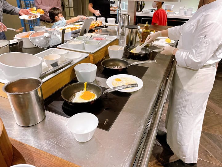 また、エッグステーションもあり、スタッフの方にリクエストすれば、目の前でオムレツ、目玉焼きなどを作ってもらえます。