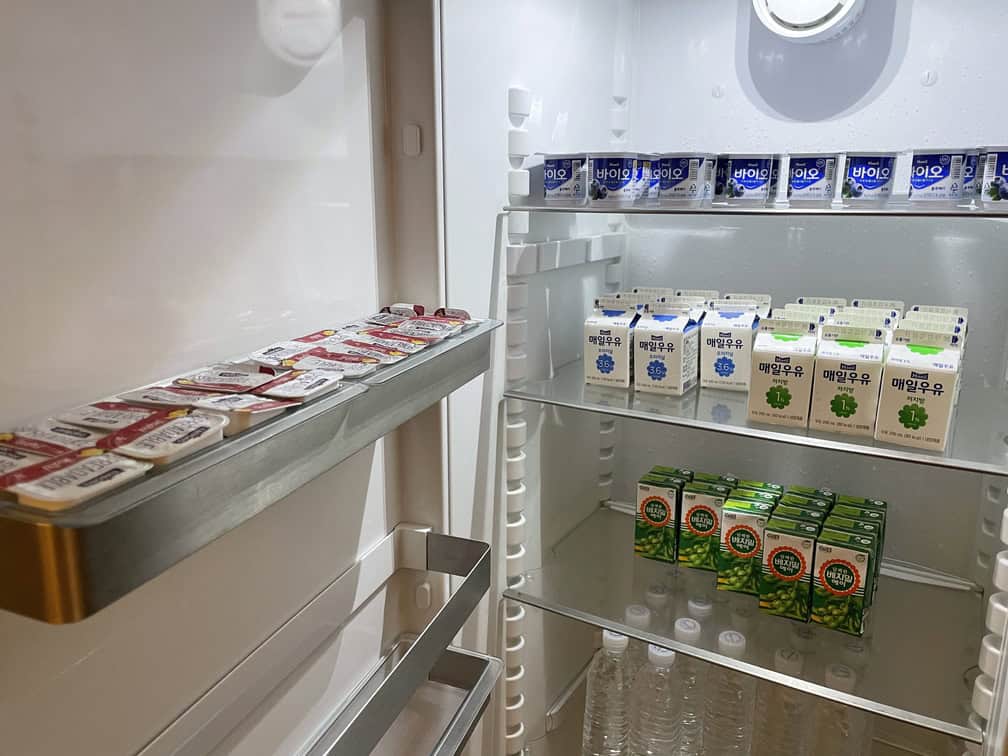 ビュッフェエリアにある冷蔵庫を開けると、ヨーグルトや牛乳などがありました。
