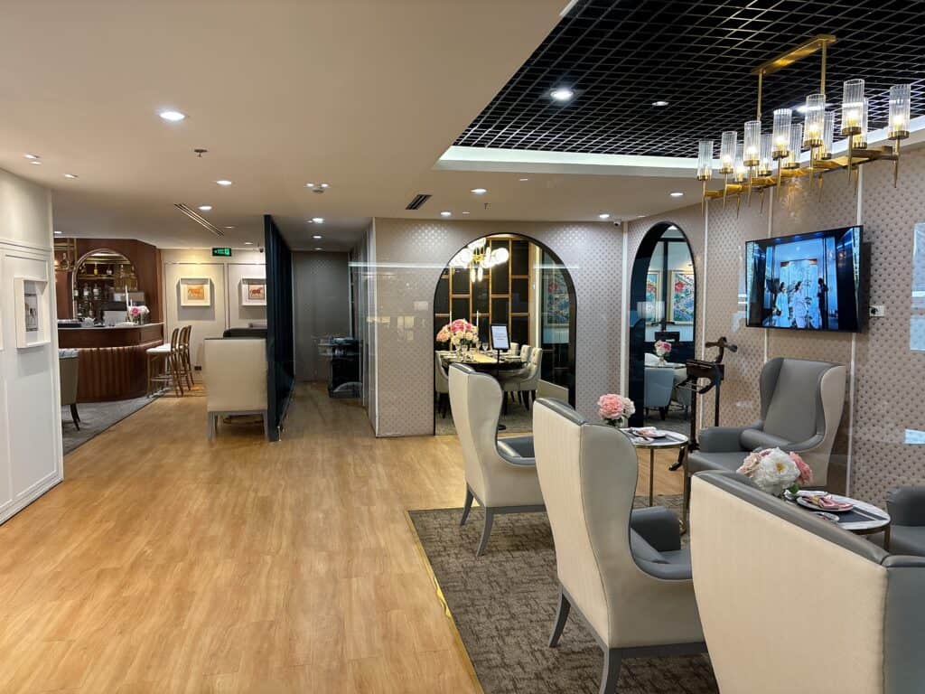 ラウンジ全体は白やゴールドを基調としていて、高級感があります。