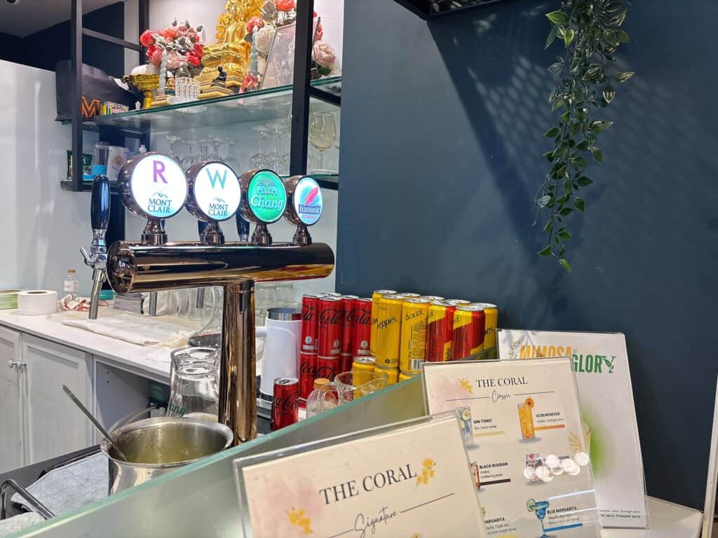 ソフトドリンクの品揃えは豊富!ビールも、ハイネケン、シンハービール、レオビール、チャーンビールとスワンナプーム空港の中でもトップクラスの品揃えです。