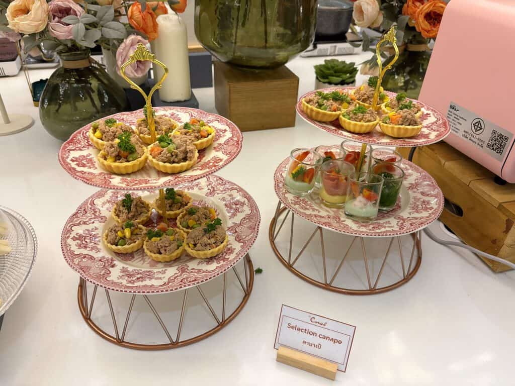 豚のテリーヌがのったタルトやカナッペなど。