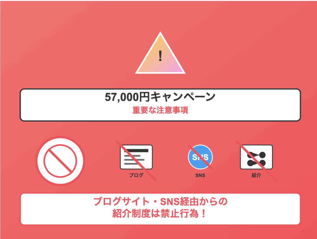 前述の通り、ブログサイトやSNS経由の紹介キャンペーンは、禁止行為とされているので控えましょう。