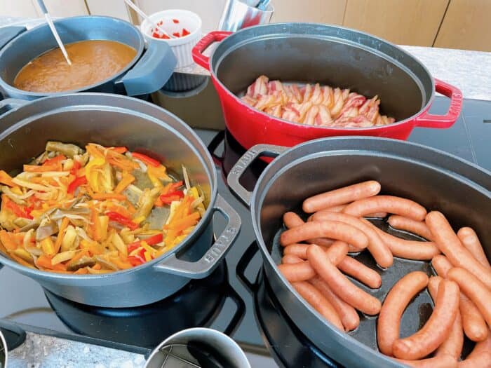 ソーセージ、カリカリベーコン、カレー。